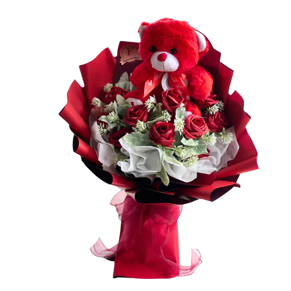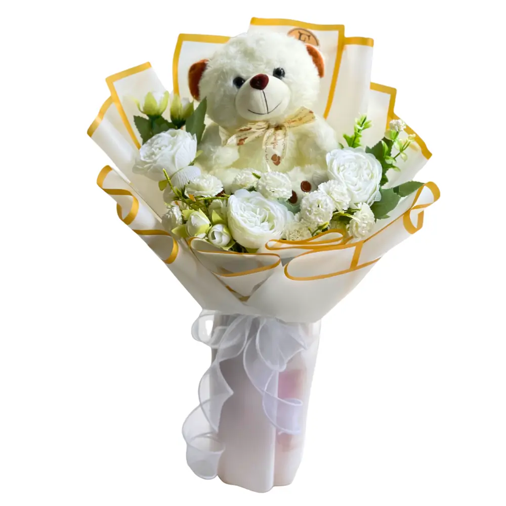 + Free Shipping 799 UpUnlike fresh blooms, this teddy and artificial Fluff & Flowers flower bouquet is a lasting reminder of love and affection. A perfect choice for birthdays, anniversaries, or any celebration that calls for something extra sweet and memorable.
