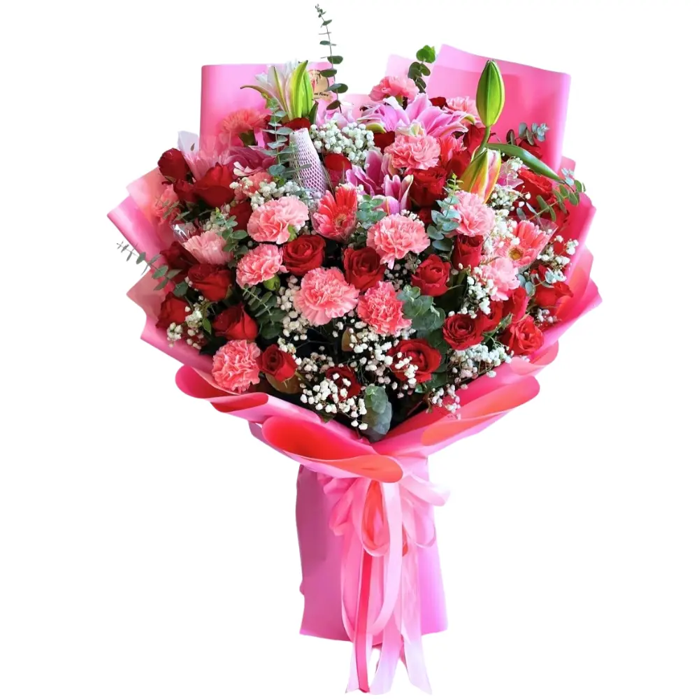 At its heart are 30 radiant roses, creating a breathtaking display of love, admiration, and beauty. Wrapped in a romantic pink floral wrap, the Mirabella Bouquet is perfect for making unforgettable statements — whether for birthdays, anniversaries, or heartfelt celebrations.